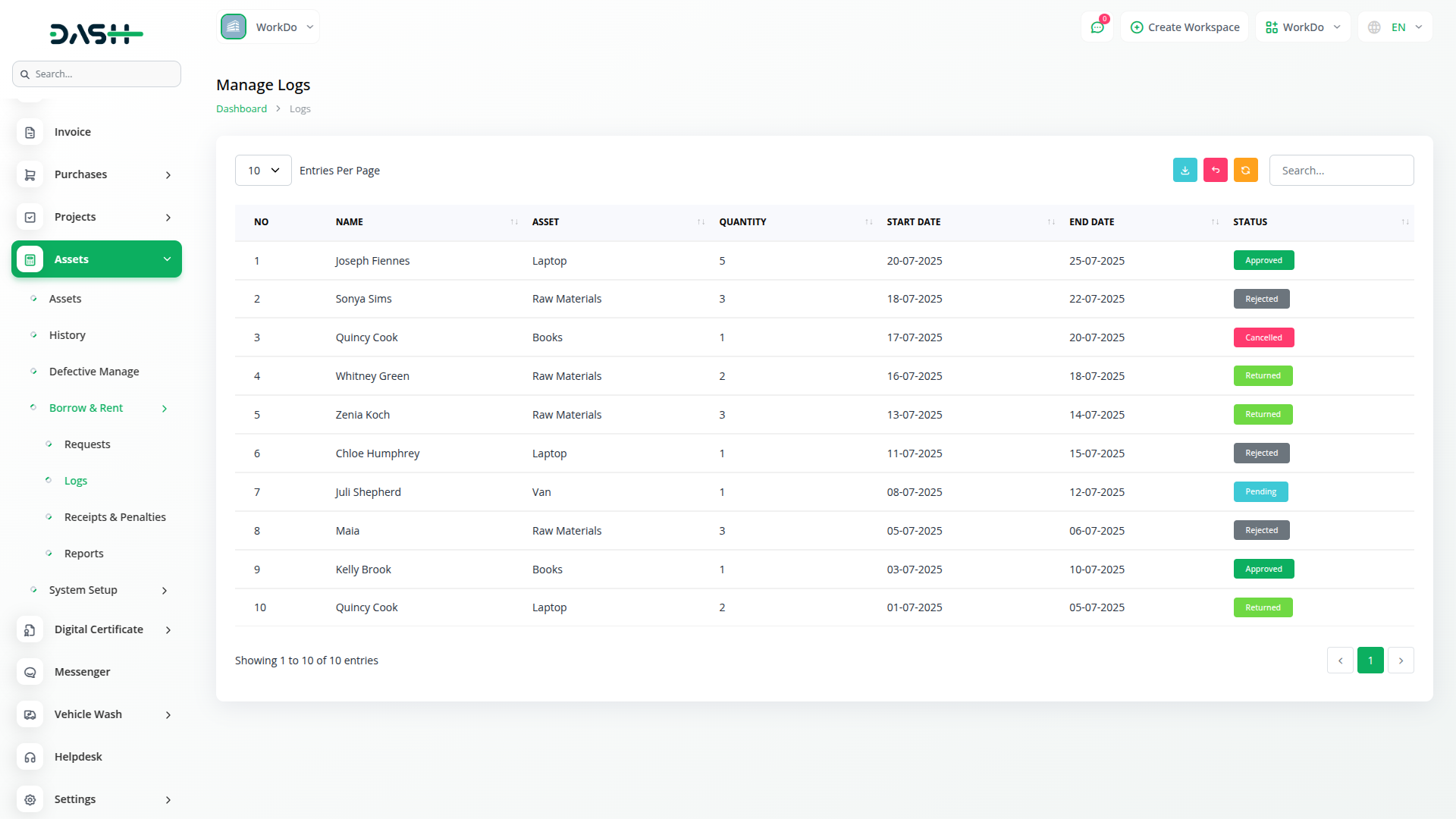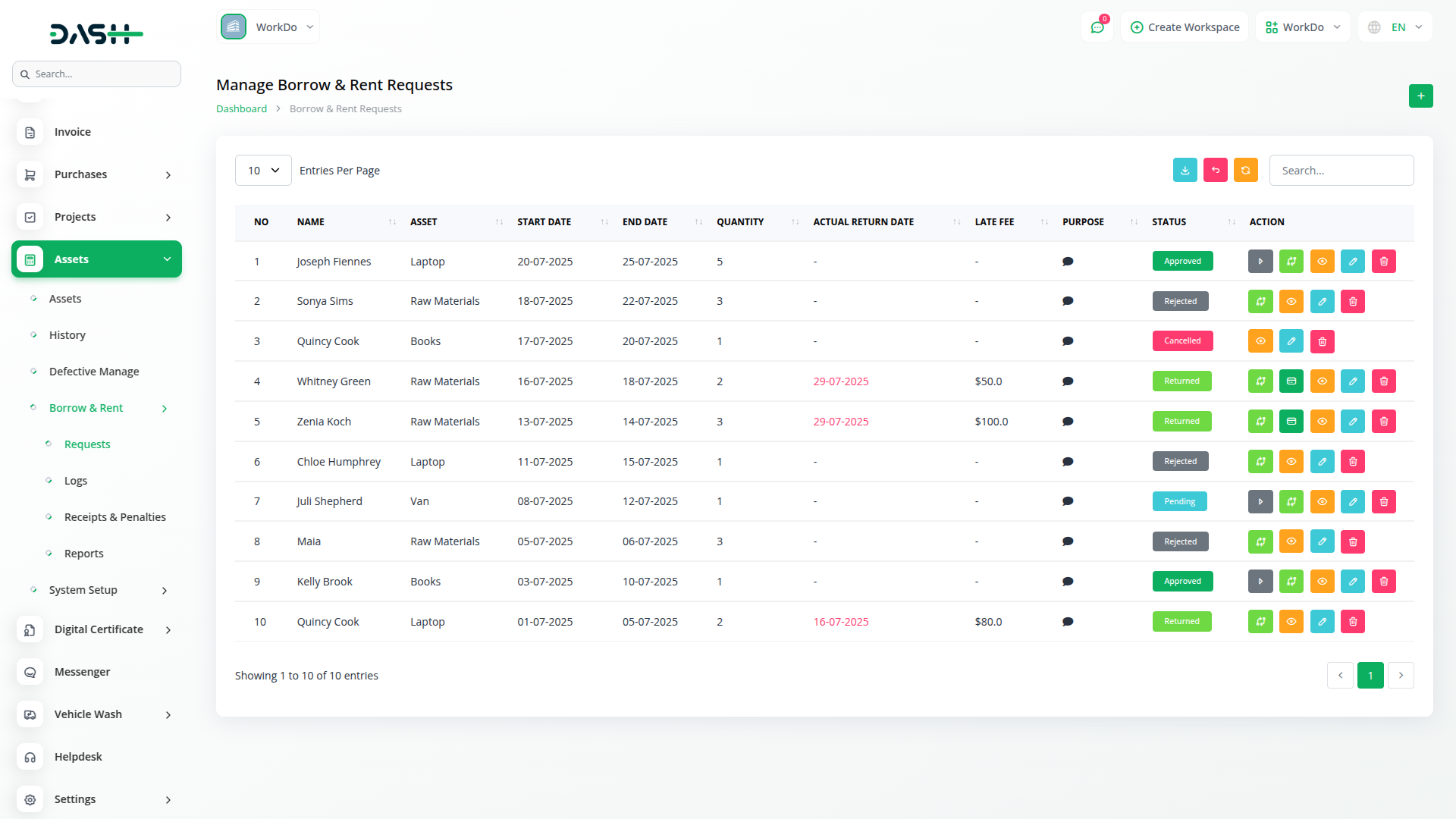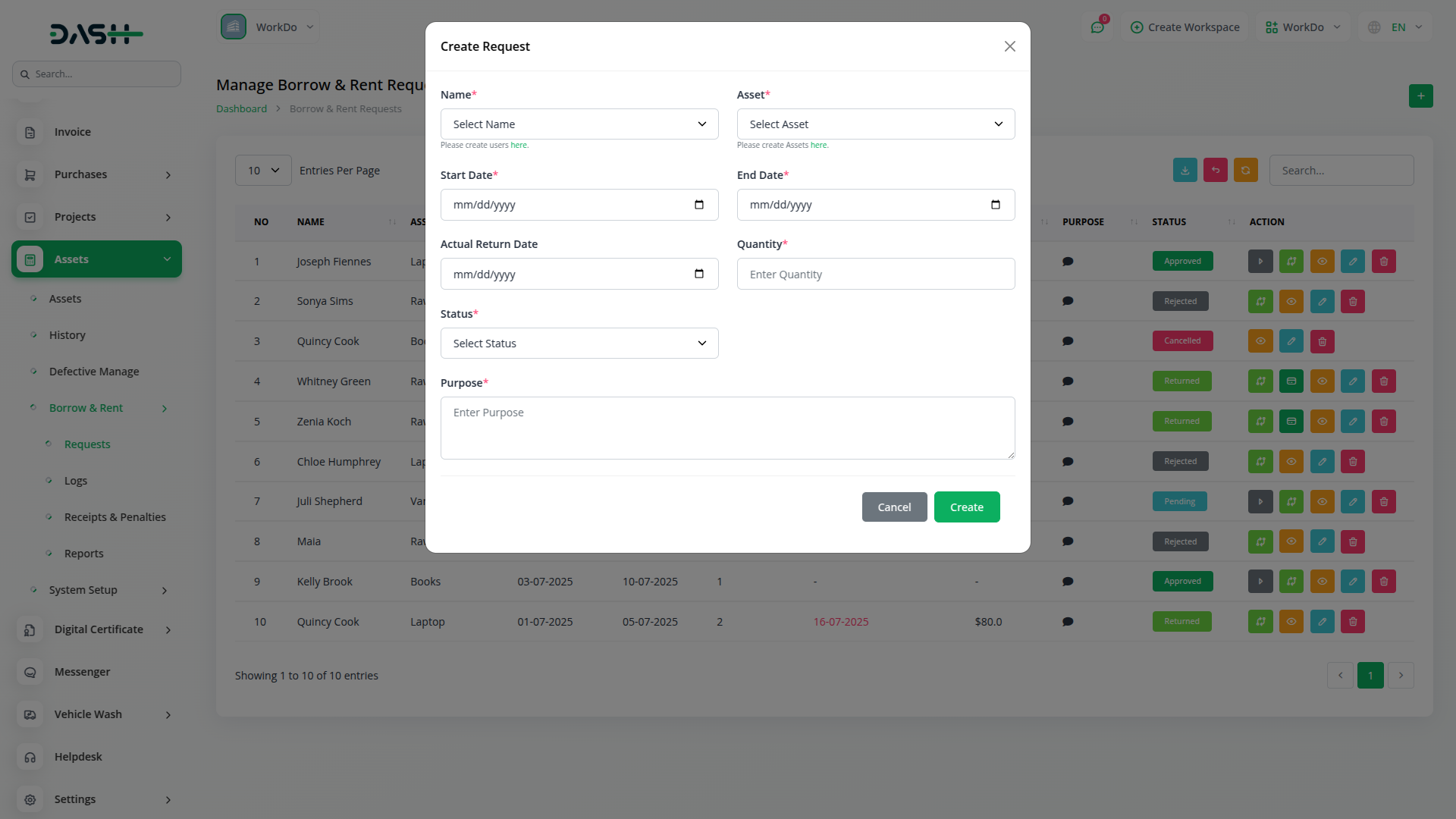 Efficiently track, assign, and manage asset borrowing and rental operatoin within your organization using the Asset Borrow & Rent Add-On